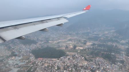 Taken from VT-TQW as Air India 2219, about to land in Kathmandu, Nepal, after a flight from New Delhi, India.
