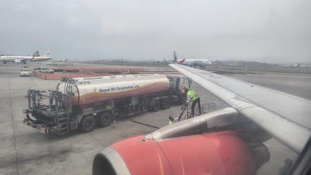 Taken from VT-EDE as Air India flight 214, in Kathmandu, Nepal, preparing for departure for a flight to New Delhi, India