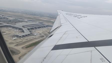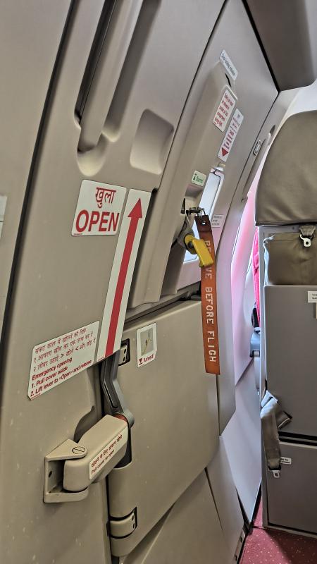 We got exit row seats again, but these newer planes have a different design of door that positions a window in the usual spot.